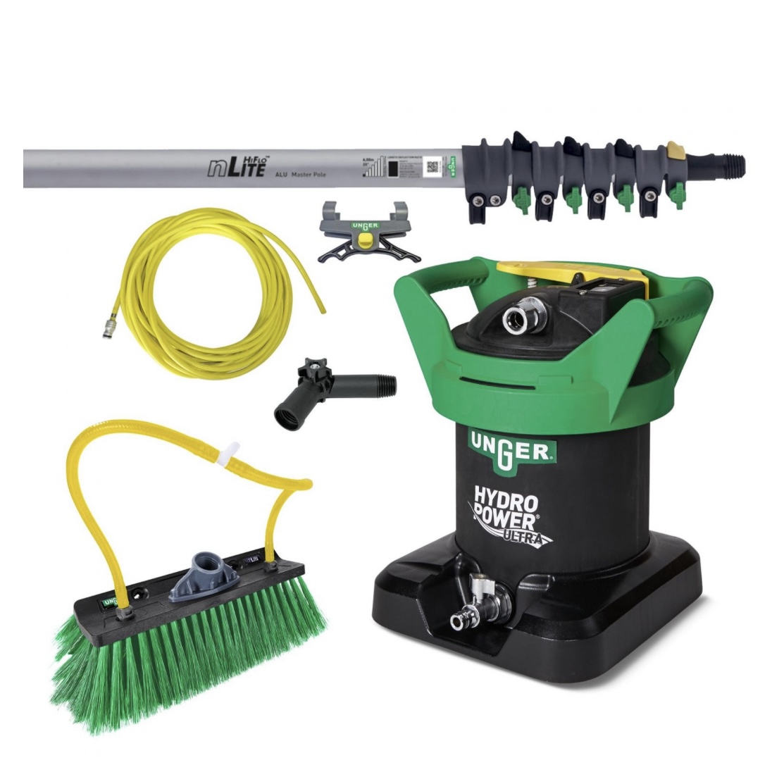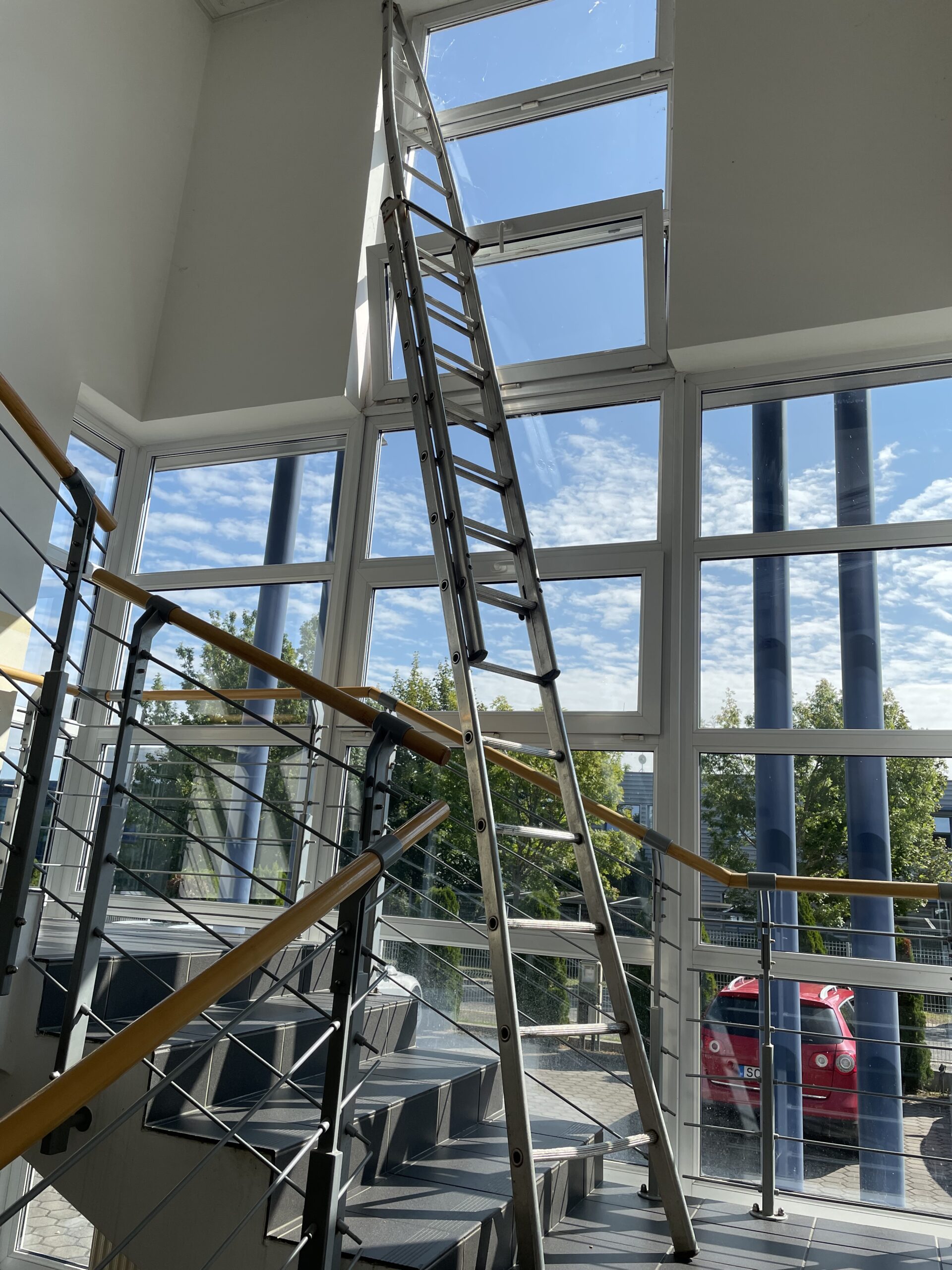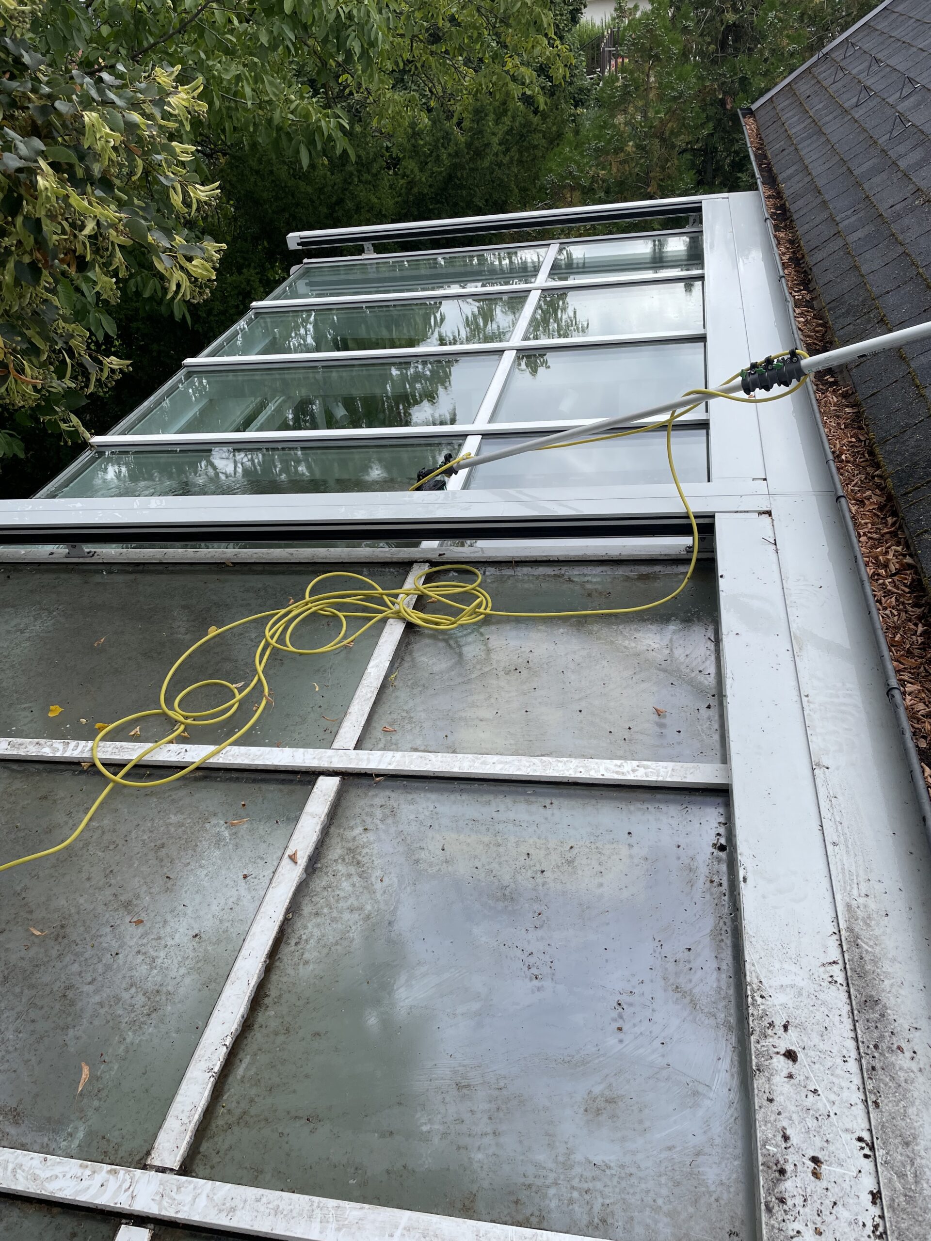 Családi házak és irodaházak ablakainak tisztítása speciális ablakmosó felszereléssel.