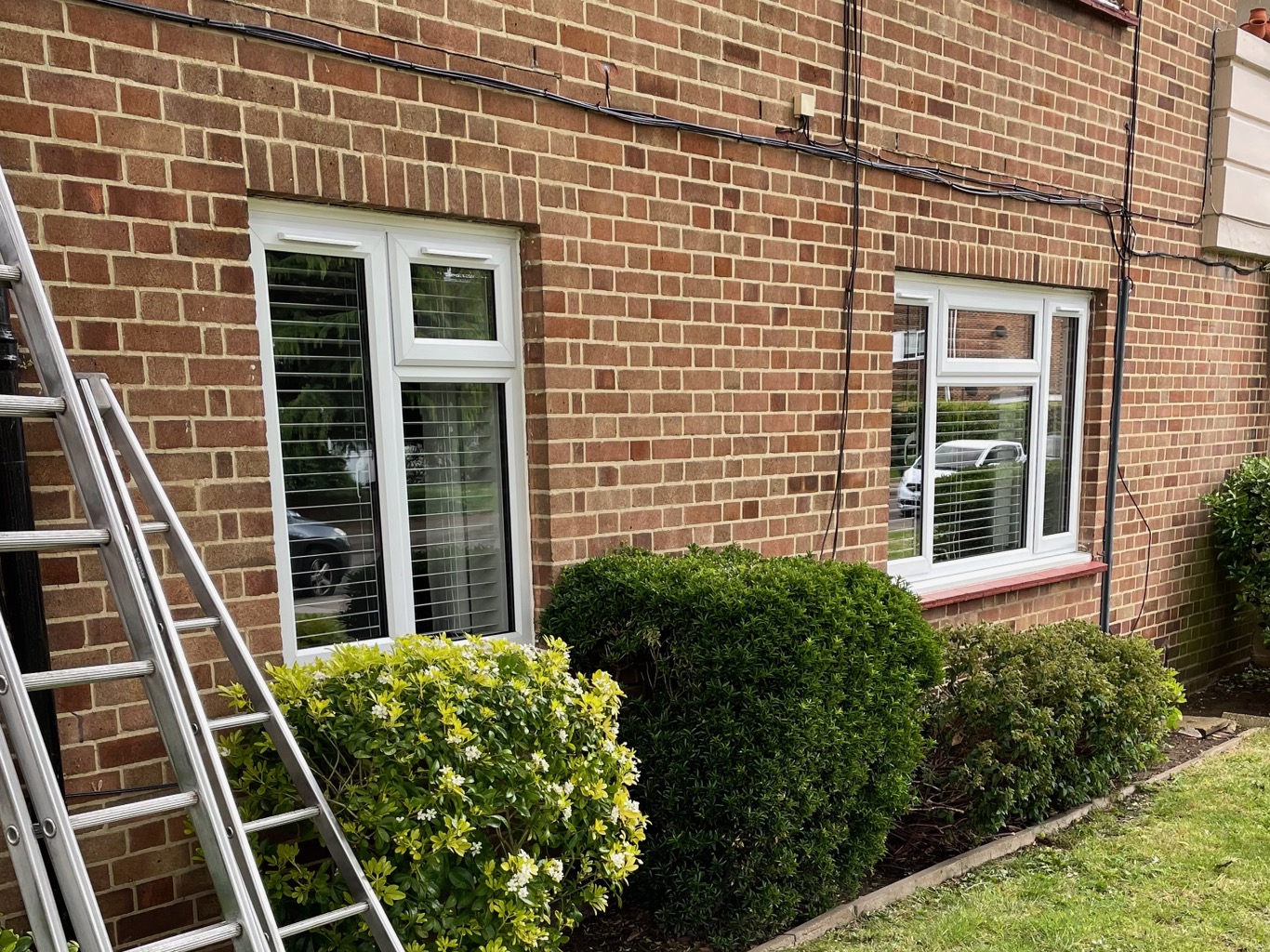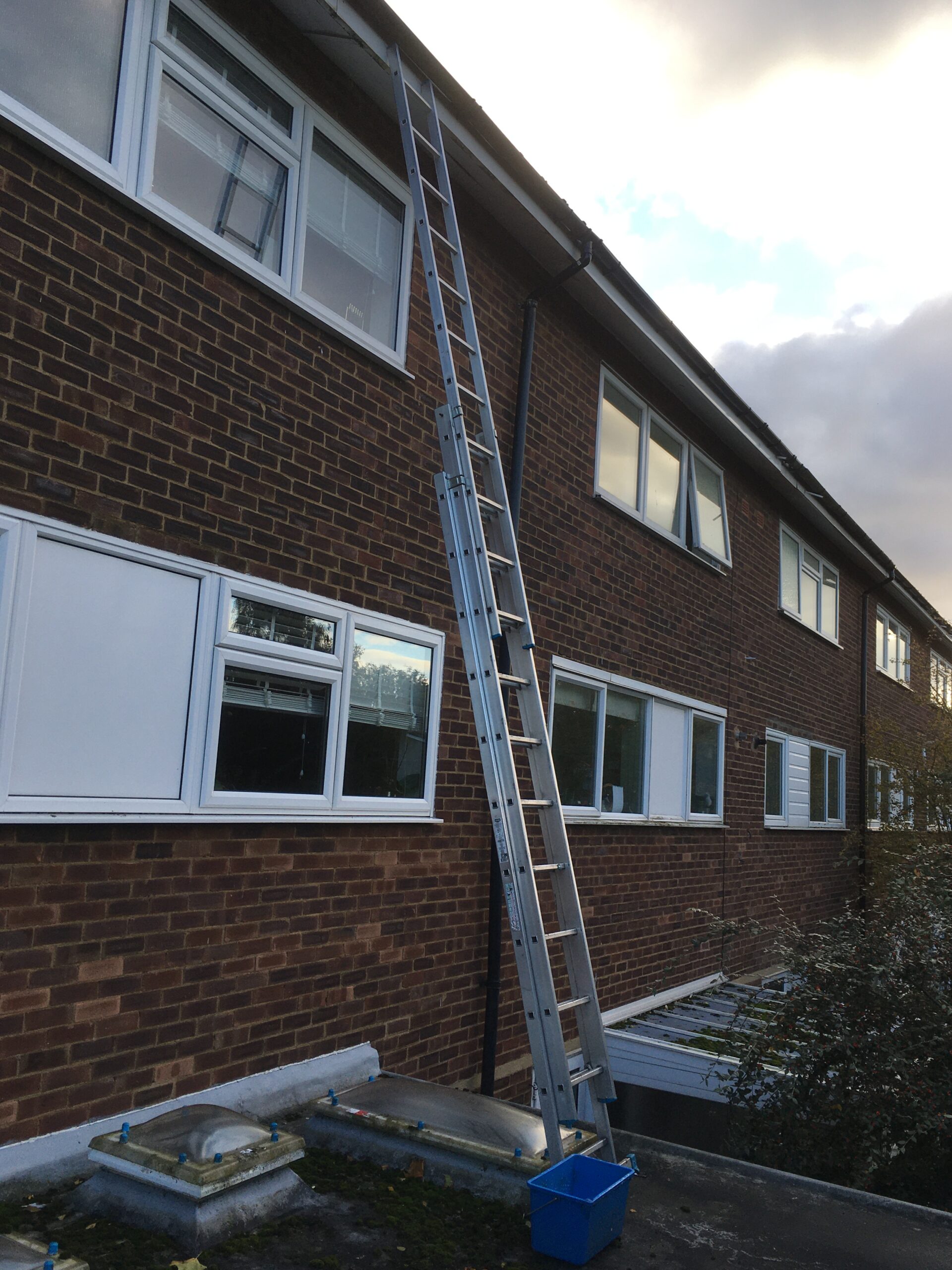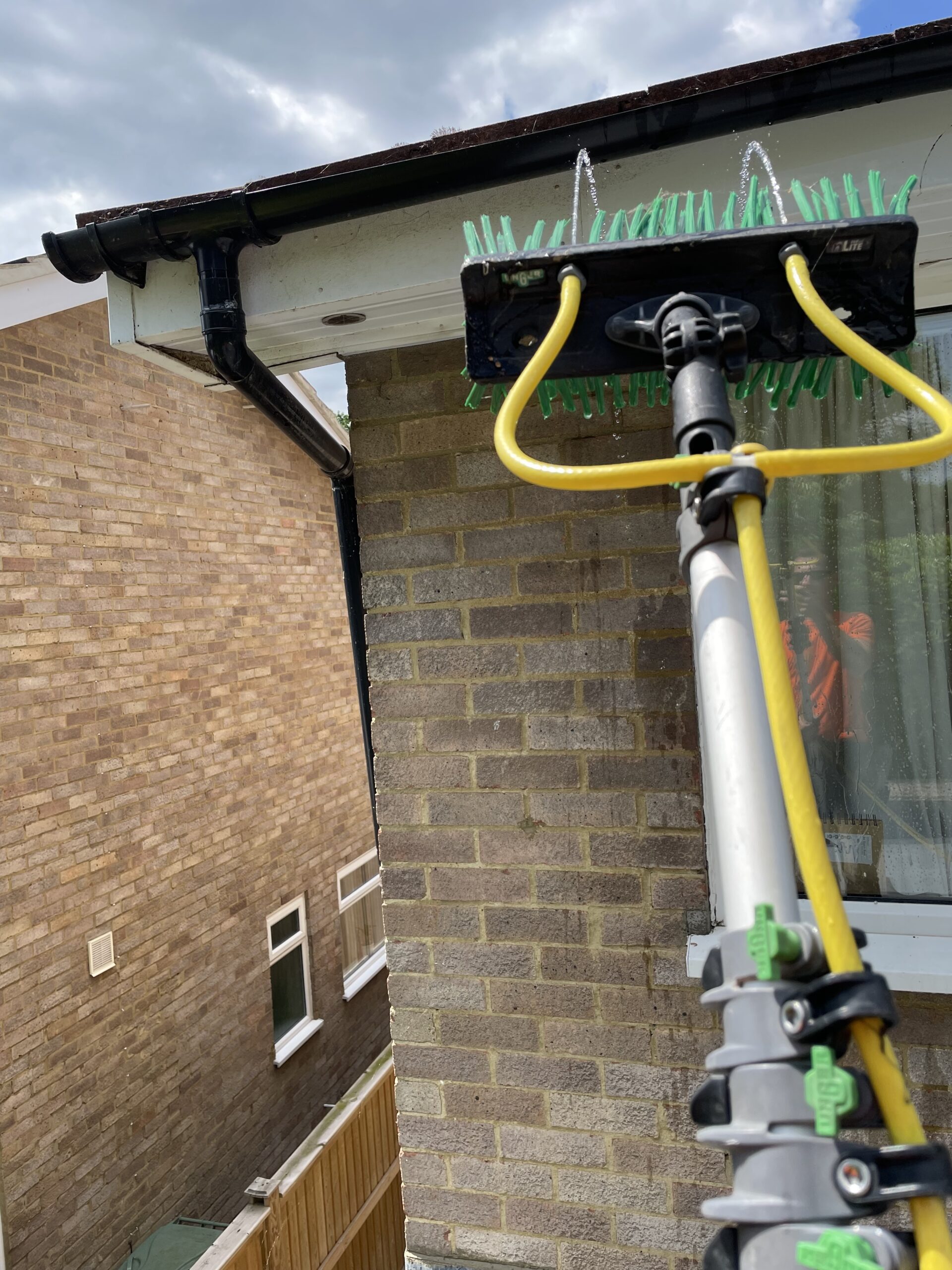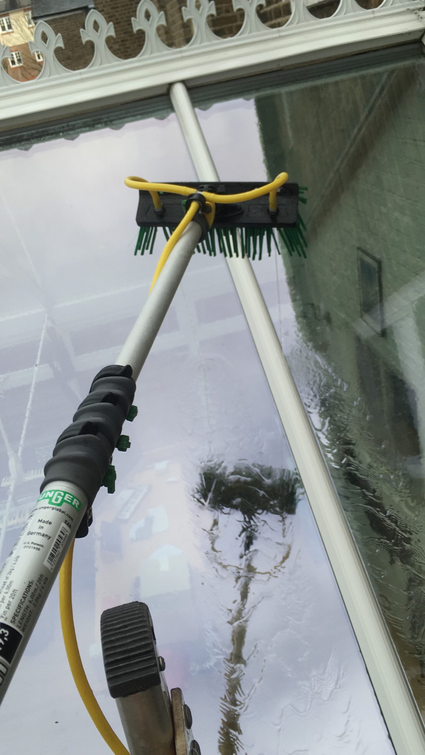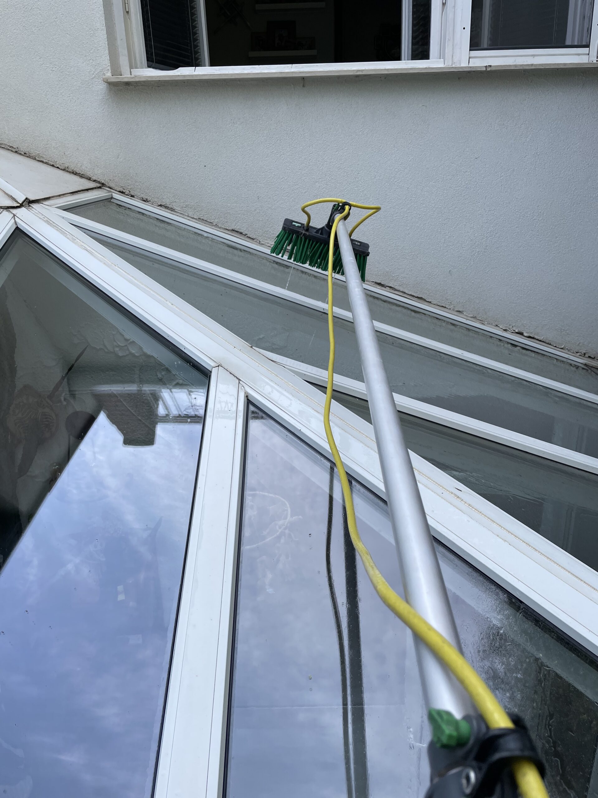 Családi házak és irodaházak ablakainak tisztítása speciális ablakmosó felszereléssel.